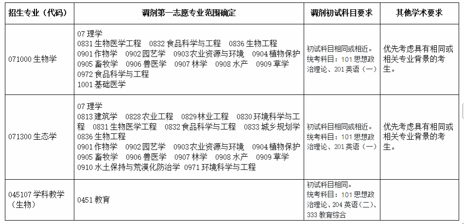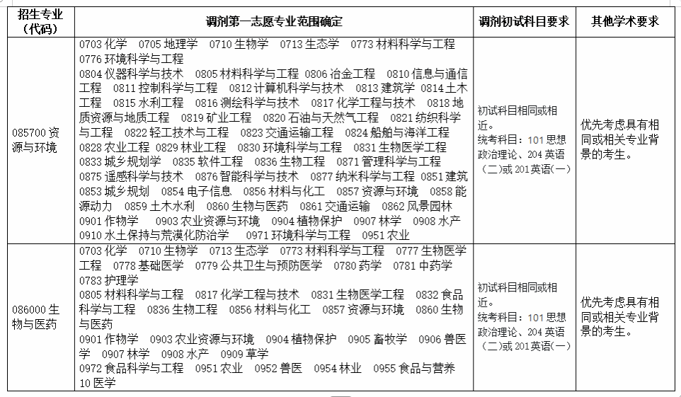 调剂考生初试成绩须符合第一志愿报考专业的国家A类复试线,并符合招生简章(及招生专业目录)中规定的调入专业的报考条件,且初试成绩必须符合调入专业的国家A类复试分数线。各专业具体要求如下: