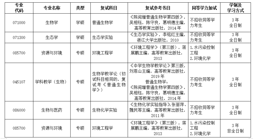 专业课考核、同等学力加试的考试科目及范围按《温州大学2026年硕士研究生招生专业目录》中所列执行。