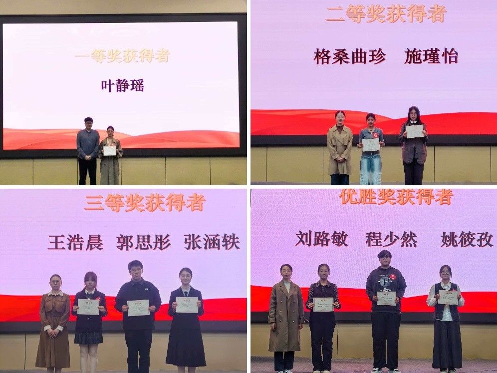 经过激烈角逐,比赛最终评选出一等奖1名、二等奖2名、三等奖3名及优胜奖3名。获奖选手在掌声中登台领奖,并与老师合影留念。