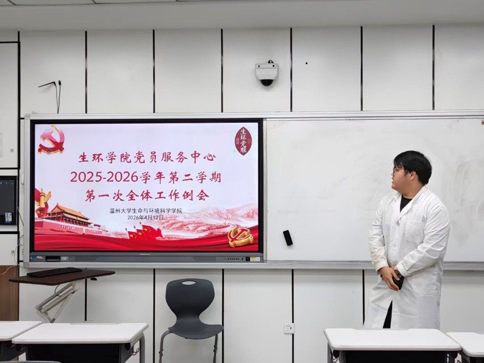 为复盘总结阶段性工作,保障学院党建工作稳步落地,生环学院党员服务中心于4月12日在11A206召开2025-2026学年第二学期第一次全体工作例会。本次会议由党服办公室部长陈涵轩主持,党服全体成员参会。