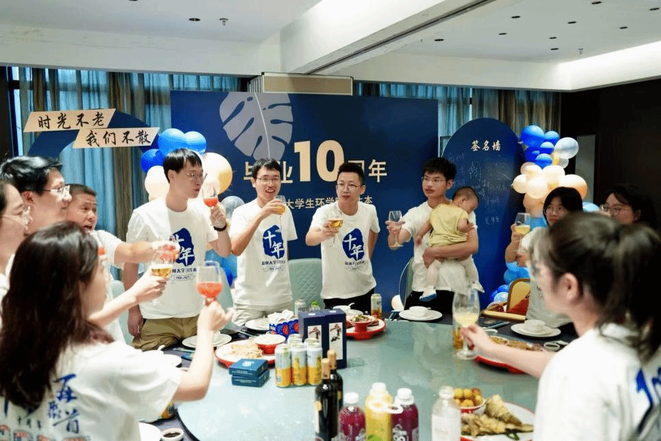 同学们也纷纷发言,分享着自己十年来的成长与收获。53名毕业生中,现已有9位硕士、5位博士,据陶老师说这在生环学院历届毕业生中是很难得的。他们在教育、科研、企业等领域崭露头角,用自己的努力和汗水,诠释着青春的奋斗与担当,也证明了当年在大学校园里所学知识的价值与意义。