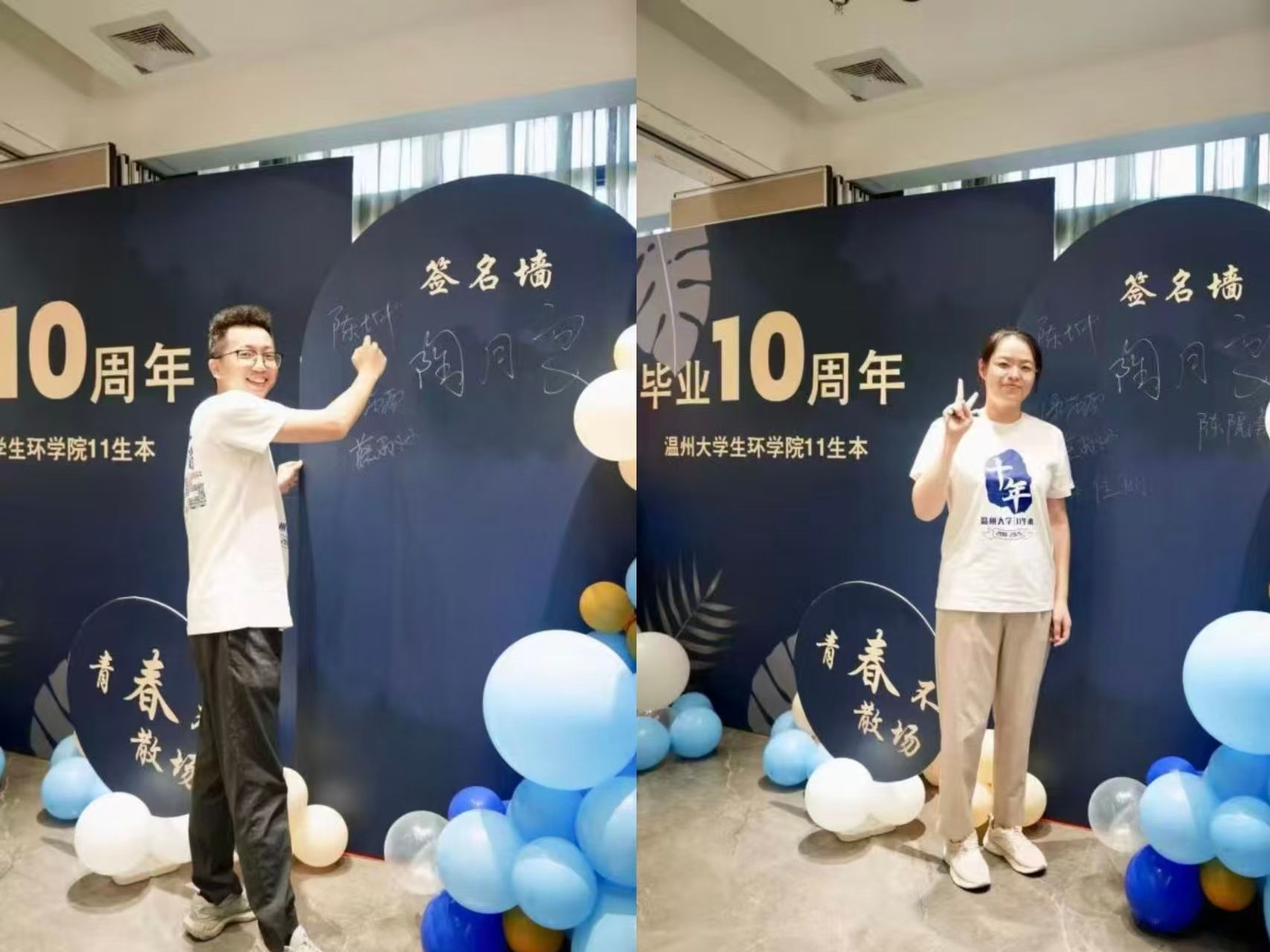 2025年8月16日傍晚,温州大学城开元宴会中心洋溢着温馨的氛围。温州大学生命与环境科学学院2011级生物科学(师范)专业的14位同学从杭州、宁波、台州等地赶赴温州大学城,共赴一场“十年之约”。班主任陶月良老师早已在签到处等候,一句“欢迎回家”瞬间驱散了大家长途跋涉的疲惫。