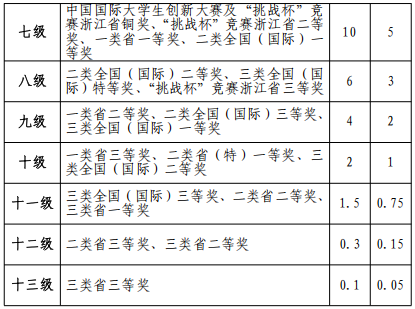 3.本表的“一类竞赛”中不包含国际大学生创新大赛、“挑战杯”竞赛、全国大学生数学建模竞赛、全国大学生职业规划大赛。