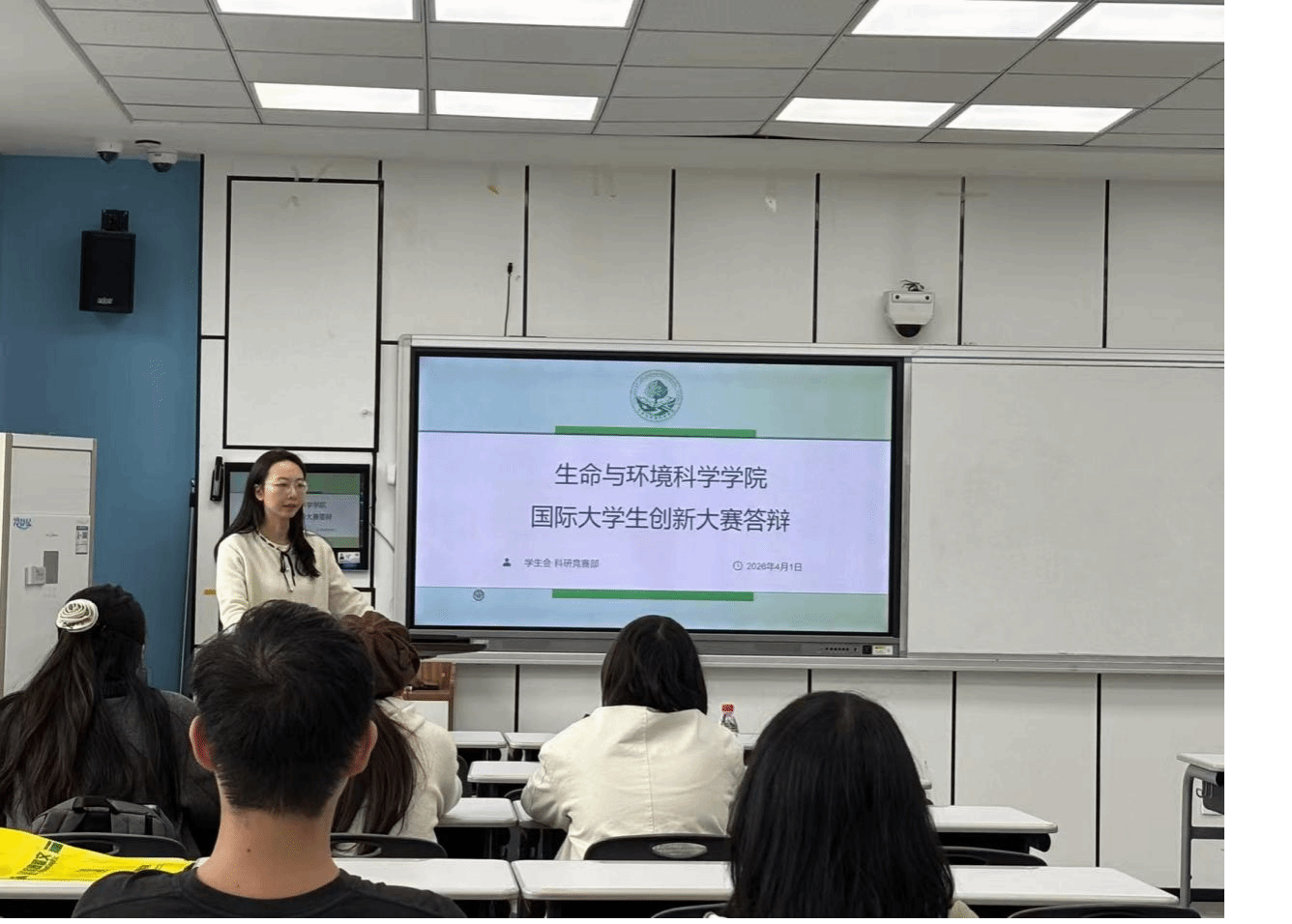 2026年4月1日下午1时40分,生环学院于11A201教室举办2026年中国国际大学生创新大赛院级答辩评选会。答辩环节邀请徐曼莉老师、詹萌老师担任评委,学工办杨雨晴老师主持会议。答辩开始前,杨老师就答辩流程与评审要求作了简要说明,以帮助各参赛团队准确把握答辩要点与展示重点。