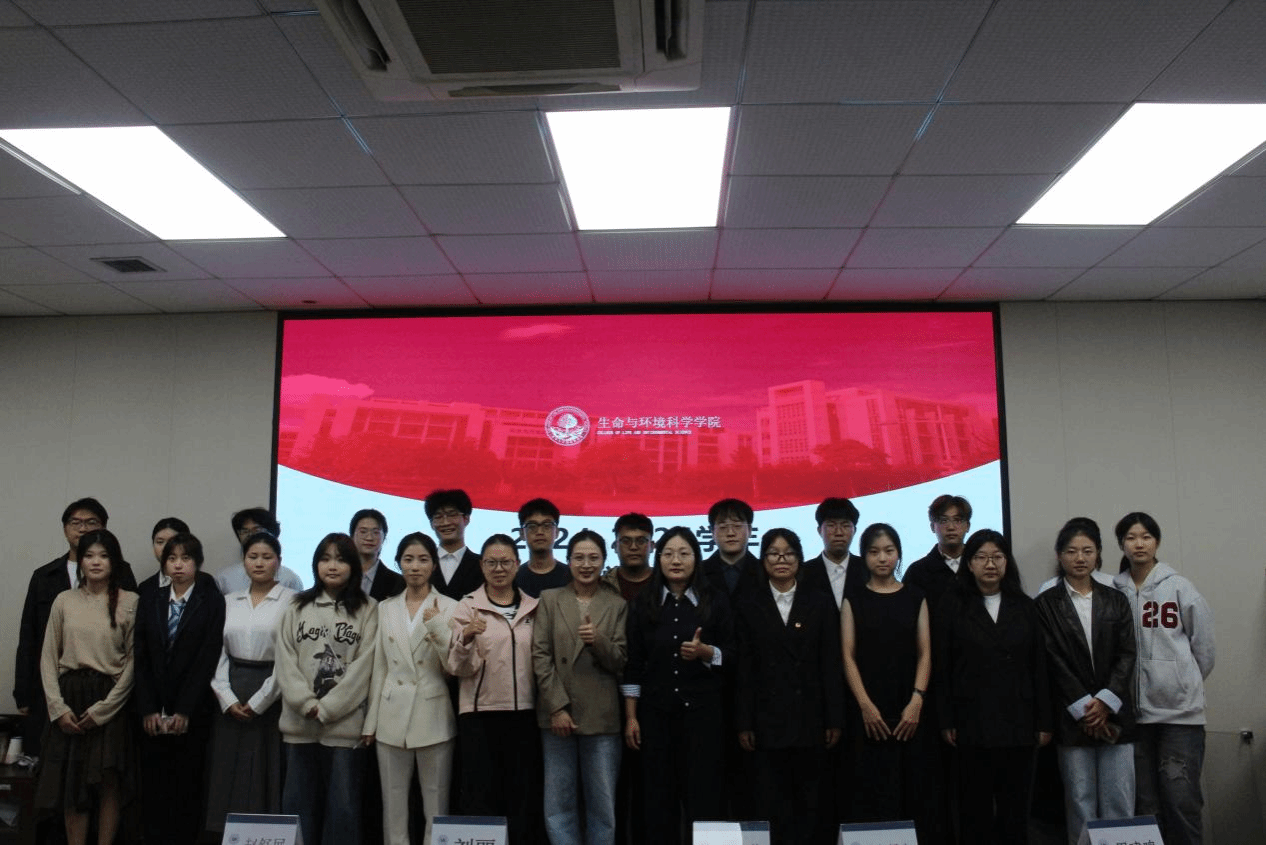 最后,所有候选班级代表和候选个人与集体老师进行大合照,为本次生命与环境科学学院评选工作画上了完美的句号。照片中青春昂扬的面庞,是学院学子积极向上的缩影,也是学院育人成果的生动注脚。未来,学院将持续搭建成长平台、凝聚榜样力量,也期待全体同学以获评代表为标杆,在学术钻研中锤炼本领,在实践探索中践行使命,共同为学院发展与学科建设注入更多青春动能,携手奔赴更卓越的新征程。