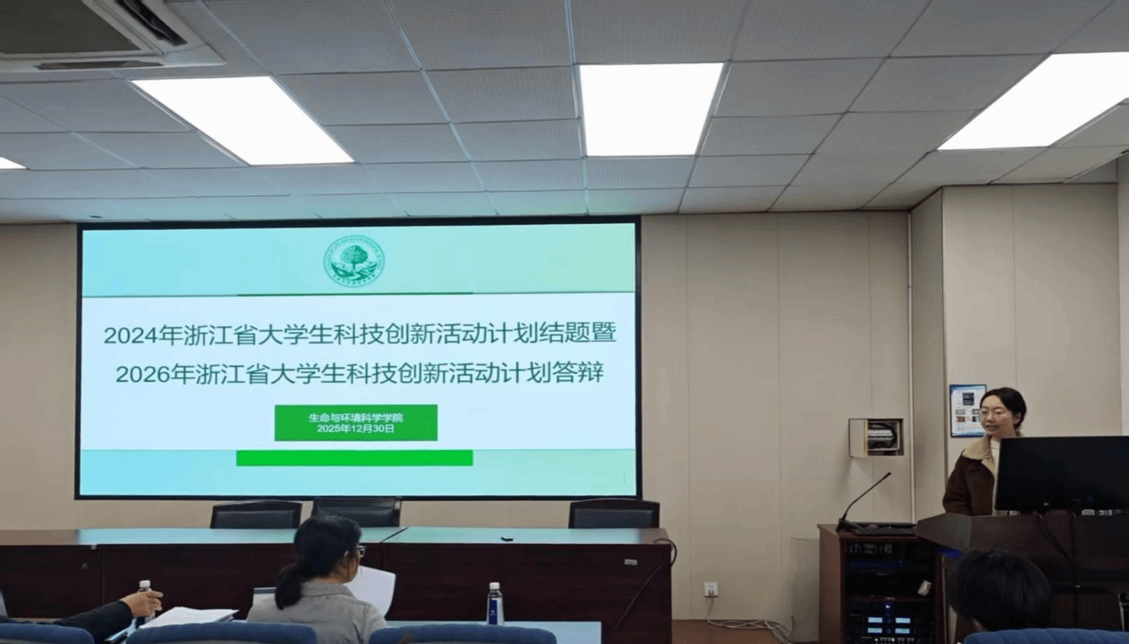 12月30日下午1点40分,生环学院在10B202会议室开展2026年浙江省大学生科技创新活动计划答辩评选会,答辩邀请吴明江教授、解雷副教授、褚淑祎副教授作为评委,学工办杨雨晴老师主持。