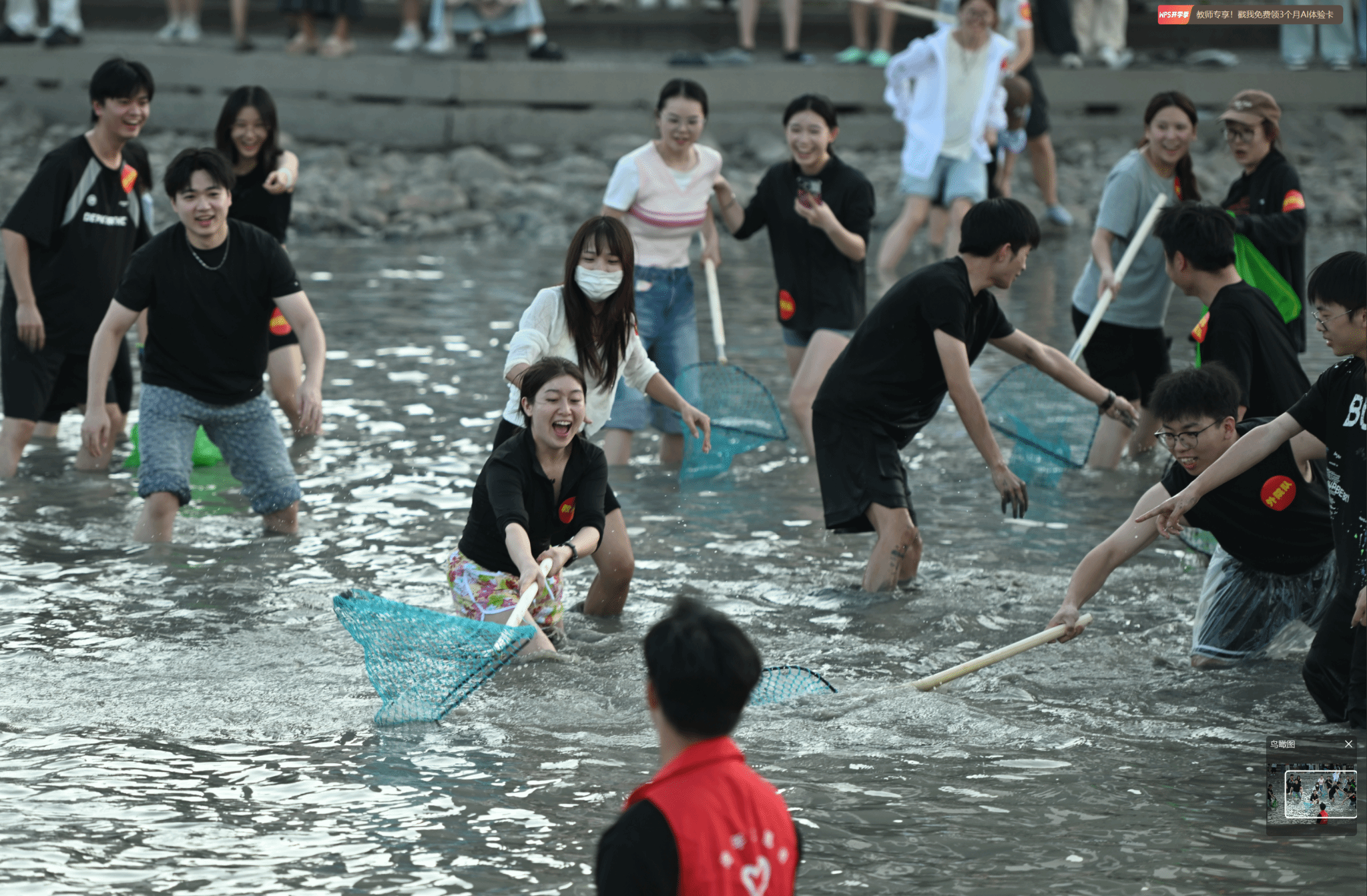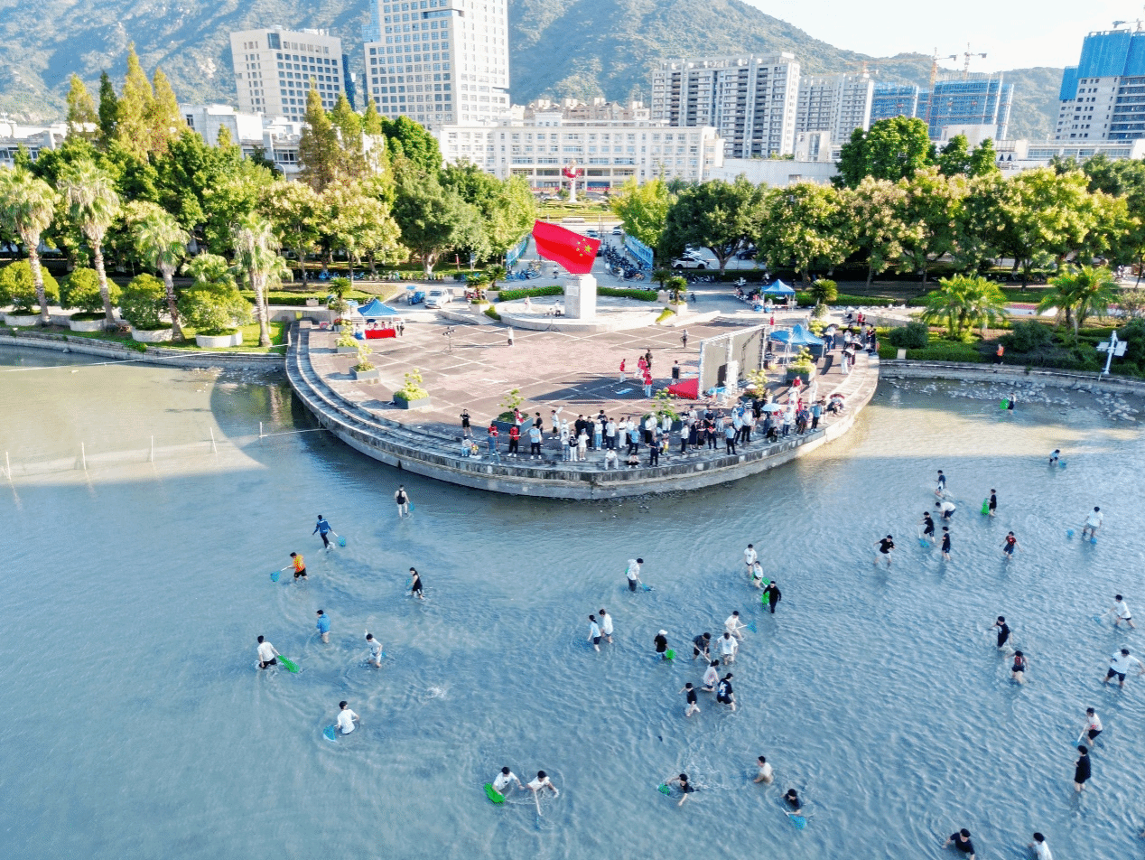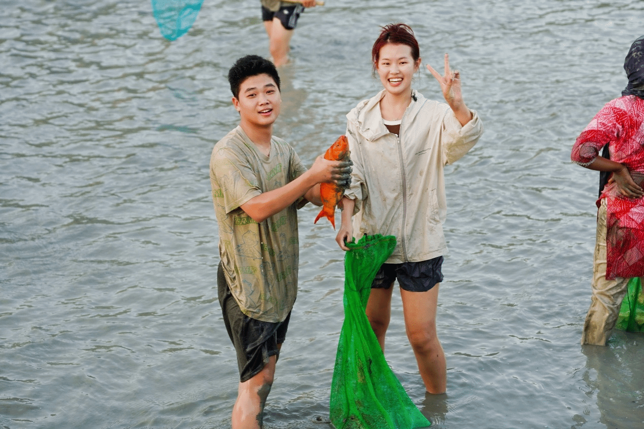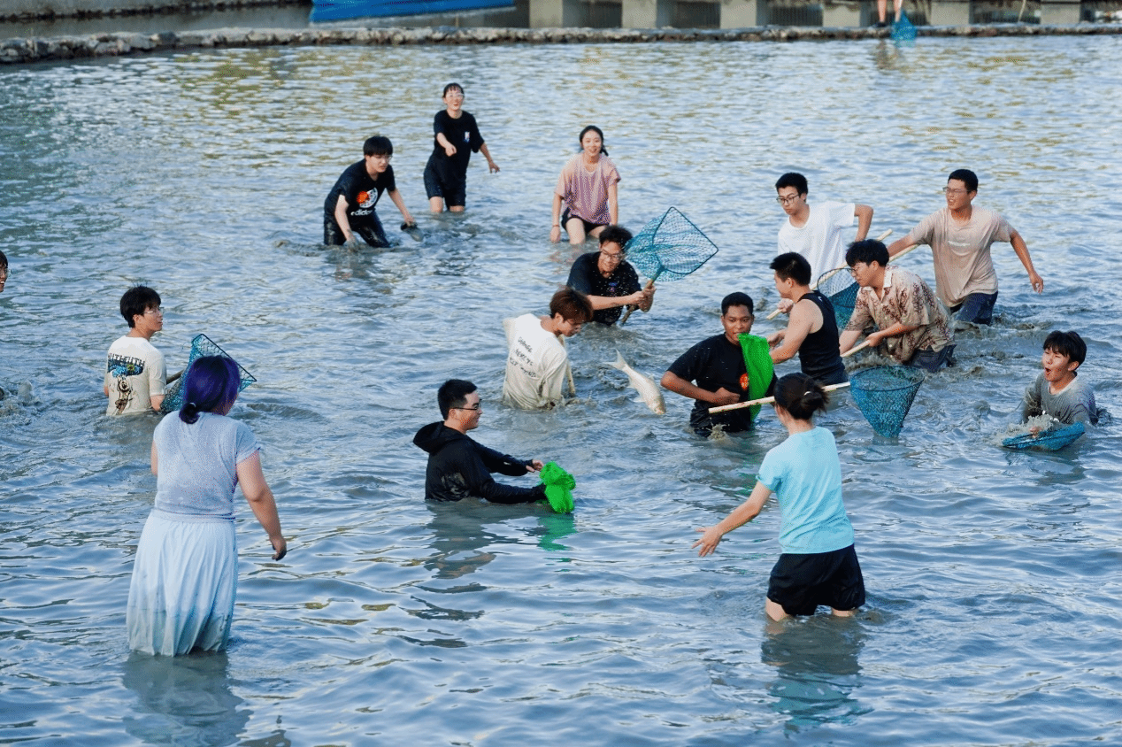 “开捕咯!!”吆喝声伴随着一阵欢快的锣鼓声后,岸边早已摩拳擦掌的同学们瞬间沸腾,如潮水般轰地冲入明心湖欢呼声、笑声与鱼儿跃出水面的扑腾声交织在一起,连路过的师生都被这热闹非凡的阵势吸引驻足——原来,这是温州大学第三届捕鱼节暨劳动教育课的火热现场。