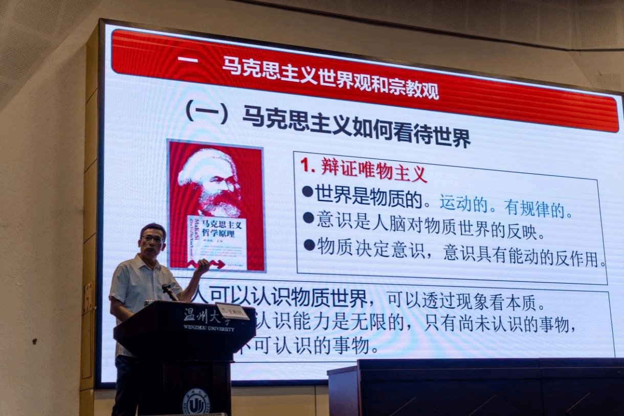 王柏民教授以“马克思主义宗教观解读”开启首讲。他从世界宗教分布现状切入,深入剖析了当代宗教四个发展趋势及我国宗教工作的独特情境,帮助同学们构建起对世界宗教形势宏观认知框架。通过对美国记者对华宗教研究及大学生对于党的宗教政策认知欠缺的解析,让同学们直观感受到新时代中国的宗教工作面临着巨大挑战。