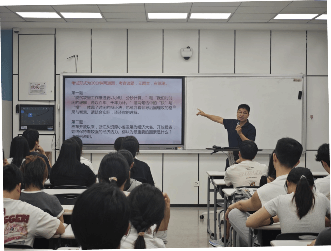 在备考指导环节,周领老师针对笔试和面试环节分别给出高效学习的建议。笔试方面,他强调要制定科学的复习计划,注重基础知识的积累,尤其要关注时政热点与政策动态;面试环节,他系统讲解了面试的形式,围绕结构化面试的常见题型、答题技巧和礼仪规范进行指导,现场示范如何逻辑清晰地表达观点,并提醒同学们要提前模拟练习,提升临场应变能力。