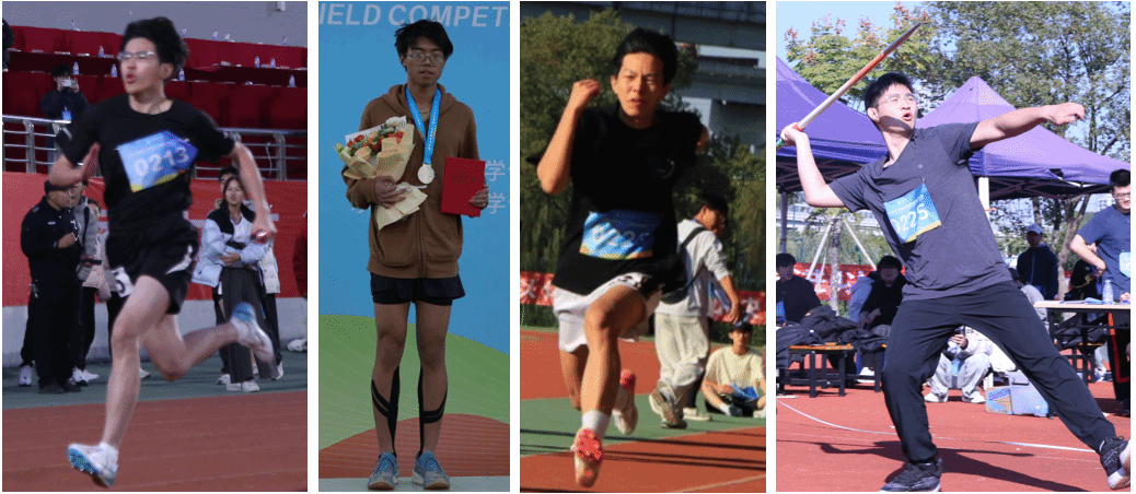 赛事打响后,我院师生在不同赛场同步绽放光芒。田径赛道上,教职工钟俊老师在女子100米短跑中奋力冲刺,斩获季军;学生女子接力队在女子4*100米比赛中稳定发挥,拿下第二名,两代“短跑能手”隔空传递速度与激情。跳跃项目中,黄先锋副院长与陈培超老师在立定跳远中分列第3、4名,展现教职工风采;学生曹依奕更是双线告捷,先在女子跳高摘得季军,又在女子跳远中一跃夺魁,成为赛场上亮眼的“跳跃之星”。