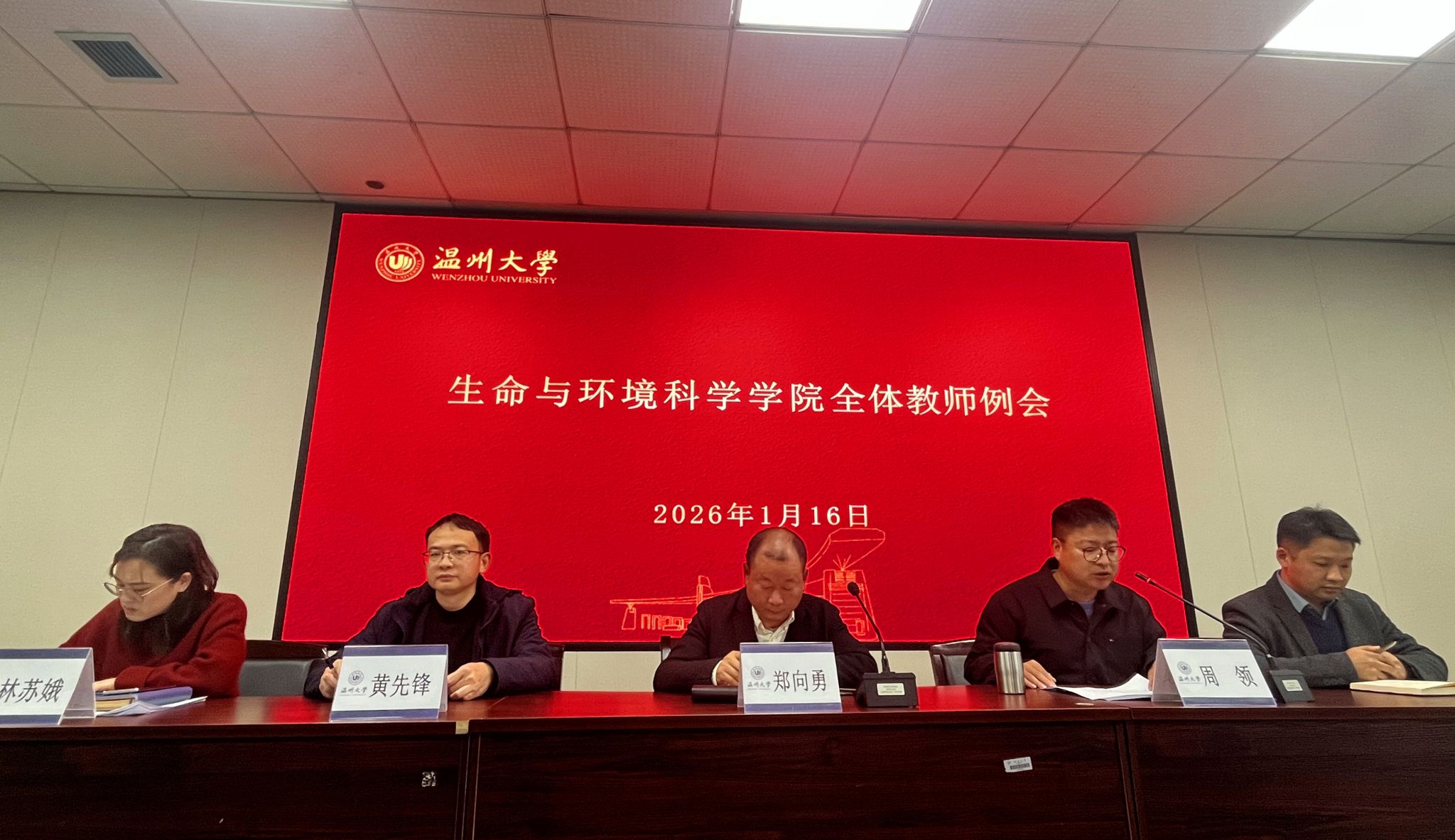 学院领导班子成员分别结合各自分管领域作工作总结和部署。院党委副书记周领通报本学期学风考风情况、寒假留校学生安全管理工作以及2026届本科生考研报考情况,期望全体班主任、硕士生导师等同心同向、齐抓共管,共同营造良好的育人环境。副院长黄先锋针对科研项目、基金申报以及研究生学位管理工作作详细说明,鼓励教师们积极关注学科前沿动态,结合自身研究方向,精心策划项目申报方案。副院长陈斌斌从课程管理、教学业绩考核、微专业建设等方面介绍近期教学工作情况,他指出,在当前教育数字化转型的大背景下,要积极发挥人工智能的技术优势,深度融入教学环节,持续优化课程体系,以提升人才培养质量。副院长林苏娥对分析测试中心和三垟湿地生态环境研究院本学期工作做阶段性总结,着重强调了实验室安全的重要性。
