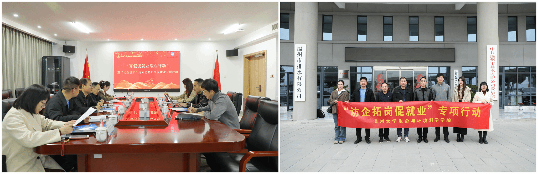 2月28日,学院院长郑向勇、党委副书记周领带队,环境工程系主任陈华林、副主任刘仁兰等一行,走访教育部“优企引才”名录企业——温州市公用集团排水有限公司(温州市排水有限公司)。公司总经理张祥维、纪委书记金有星及人力资源部负责人热情接待学院一行。座谈会上,双方就人才培养、科研合作、党建共建、科技成果转化等方面进行广泛而深入的探讨。企业方详细介绍了公司在排水运营、水质化验、技术创新等领域的发展情况,并明确指出对化验检测、工程技术等岗位专业技术人才的稳定需求,这与我院环境工程、生物技术等专业的培养方向高度契合。双方一致表示,将在学生专业见习、毕业设计、联合技术攻关、专业宣讲等方面进一步探索合作模式,推动产学研用深度融合。