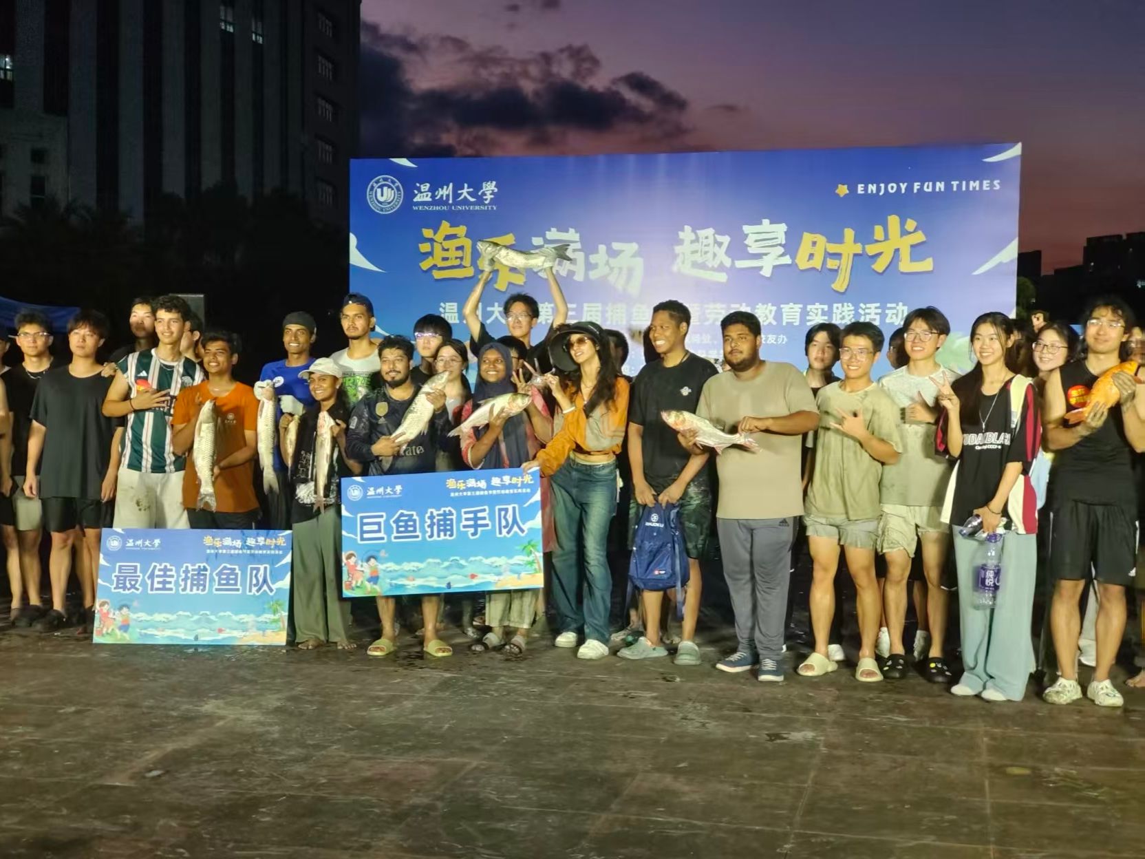 本次活动由温州大学生命与环境科学学院承办,不仅是一场体力与智慧的趣味比拼,更是一堂以“劳动创造幸福”为核心的生动实践课。活动背后,是生环学院的研究生们从课堂走向实践、将知识转化为行动的深度参与。从渔网、水桶等物资的搬运与统筹调配,到活动场地的细致分区;从一支责任心强的“水下安全员”队伍全程护航,到开幕环节气势恢宏的击鼓表演——每一个环节的周密筹备,都体现了研究生们卓越的组织协调能力与奉献担当精神。评比环节中,研会志愿者迅速架设称重设备,精确记录每份成果,确保评判公正。当“最佳捕手团队”与“巨鱼之王”奖项揭晓时,现场掌声雷动,将劳动的成就感推向高潮。