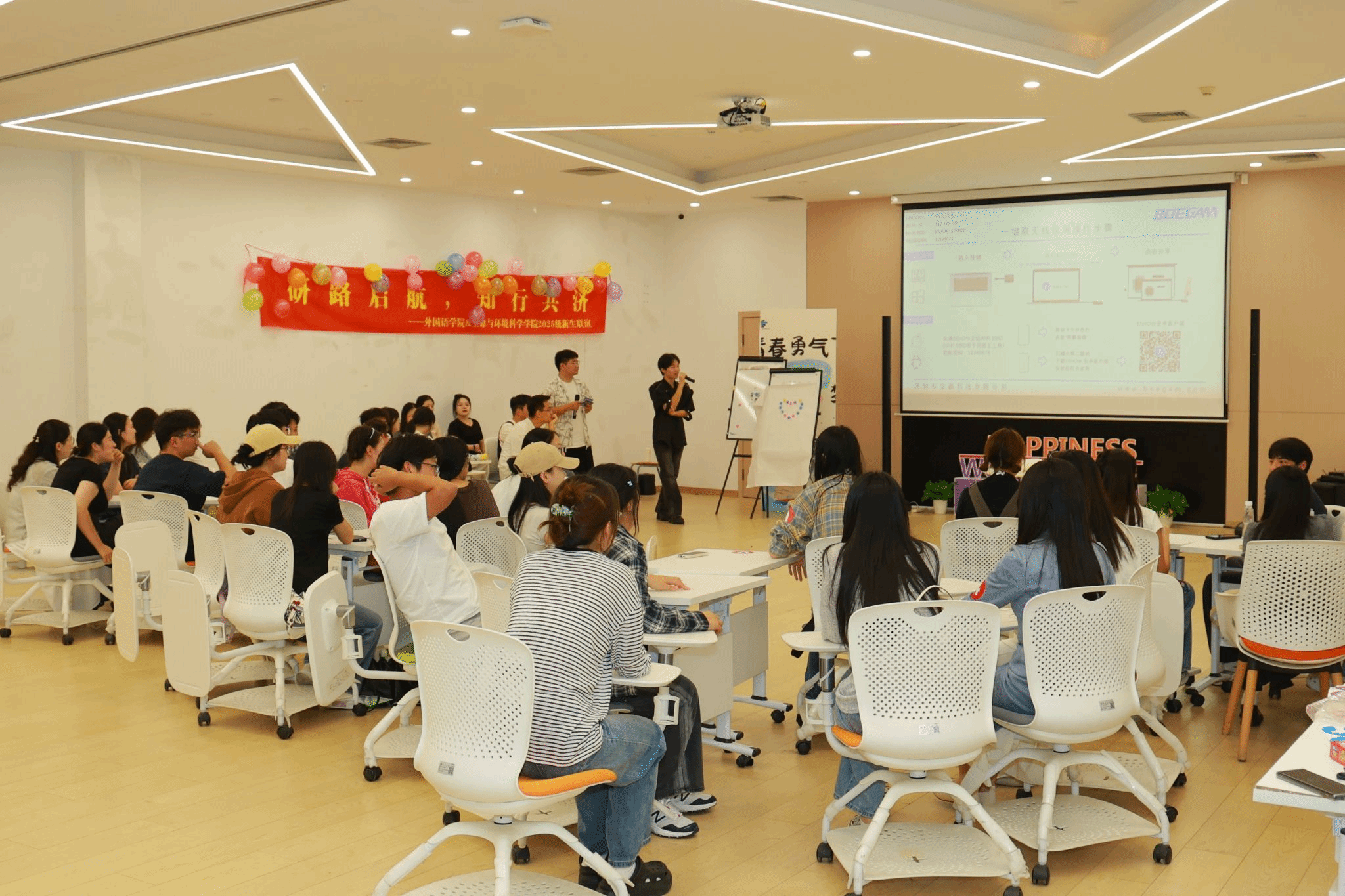 秋意渐染,人心向暖。2025年10月19日,温州大学生命与环境科学学院与外国语学院在幸福工坊联合举办“研路启航,知行共济”研究生新生联谊活动。此次活动旨在打破学科壁垒,为来自不同学术背景的2025级研究生新生搭建一个轻松愉快的交流平台。通过精心设计的环节,促进两院学子在思维模式、专业特色上的碰撞与融合,为崭新的研究生生活注入活力与温情,共同描绘一幅跨学科交流的生动画卷。