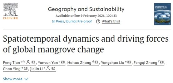 近日,我院田鹏博士在环境与生态期刊《Geography and Sustainability》(中科院一区TOP)上在线发表了题为“Spatiotemporal dynamics and driving forces of global mangrove change”的最新研究成果。