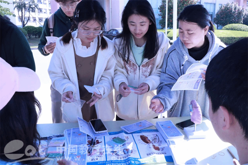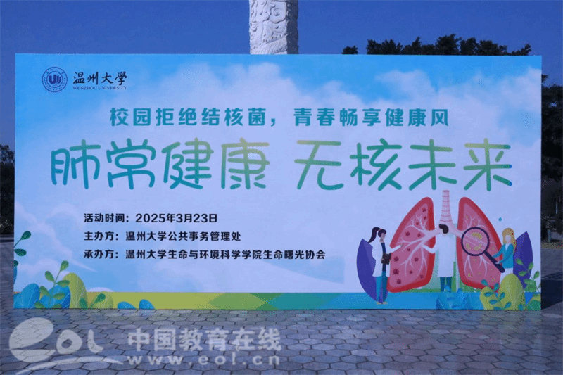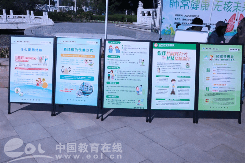 中国教育在线浙江站讯 (编辑 陈显婷 通讯员 朱晓琳)阳春三月,万物复苏,正是关注健康、拥抱新生的好时节。近日,为了提高同学们对肺部健康的关注,倡导科学防治结核病,温州大学医务室联合生环学院生命曙光协会在南校区华表广场举办了一场别开生面的“肺常健康,无核未来”主题活动。此次活动吸引了众多师生参与,现场气氛热烈,大家在轻松愉快的氛围中学习了结核病防治知识,增强了健康意识。