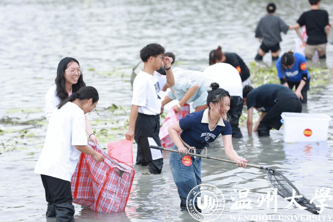 “亲手抓鱼、采莲蓬、割水草,这样的劳动活动有点意思!”坐落在温州大学茶山校区的明心湖,水草丰茂,鱼儿畅游,荷香飘然而至。近日,“明心湖畔,鱼你相约”捕鱼节活动在温大“明心湖劳动教育基地”启动,各个学院的学予以小组赛的方式,体验了一场特殊的劳动课。