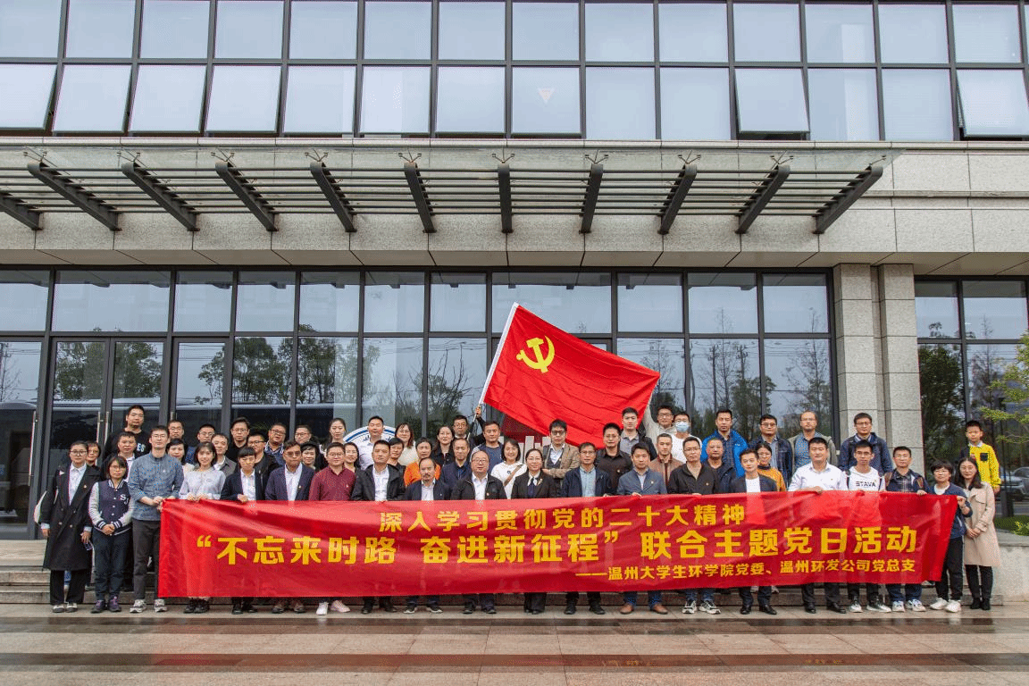 中国教育在线浙江站讯 (记者 占尘雪 通讯员 陈瑞鑫 陈姗姗)为积极响应贯彻学习党的二十大精神号召,引导教职工党员围绕全面学习、全面把握、全面落实的要求,深入开展“六学六进六争先”学习实践活动,完善作风建设、教书育人、科研实践、社会服务“四位一体”的党建+工作机制,近日,温州大学生命与环境科学学院党委与温州环发公司党总支联合开展了“不忘来时路,奋进新征程”的主题党日活动。