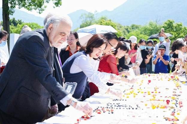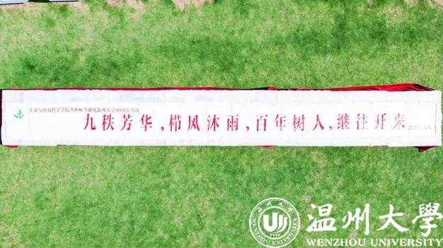 使用1800个鸡蛋、90斤水果,耗时20余小时,成型后长9米、宽1.2米、总重量超178千克……时值温州大学90周年校庆到来之际,5月9日上午9点33分,温州大学生命与环境科学学院在学校“Hello WZU”草坪上开展了一堂生动开放的专业实践教育课。现场,温州大学校领导同90位师生代表共同制作9米巨型蛋糕,深情祝福温州大学90周年校庆。