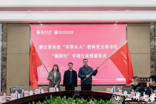 会上还举行了校企合作项目揭榜仪式和浙江省高校“双带头人”教师党支部书记“强国行”专项行动团队授旗仪式。