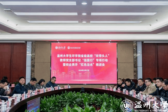 为进一步发挥党建引领的教师党支部示范作用,深化校企合作联学共建,将“红色力量”转化为高质量发展的“绿色引擎”,12月27日下午,温州大学生环学院省级“双带头人”教师党支部书记“强国行”专项行动暨校企携手“红色治水”推进会在温州大学南校区举行。