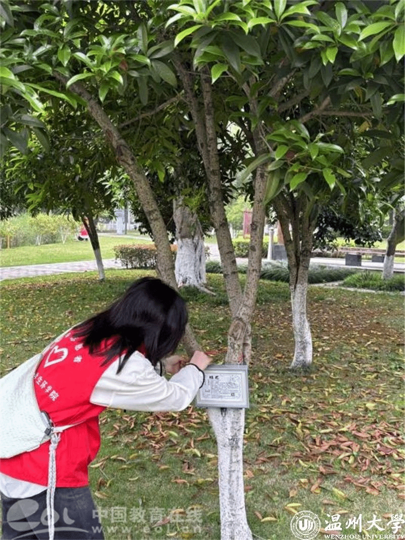 4月20日,温州大学生命与环境科学学院同温州市绿色公益协会、温州医科大学第一临床医学院影像第一支部委员会联合举办以“世界地球日--植物识方,守护自然”为主题的植物挂牌公益志愿活动。