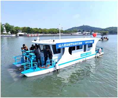 “飞廉号”作为温大碧晟Ⅲ型旗舰控藻船,此次成功在太湖落地投用,标志着我国物理原位生态控藻核心技术,正式迈入产业化落地、规模化应用、标准化推广的全新发展阶段,为湖泊富营养化治理领域科技成果转化树立标杆。在太湖首航仪式现场,赵敏教授指出,“温大碧晟Ⅲ型高效控藻船‘飞廉号’是高校基础研究、技术创新、产业落地、社会服务产学研用深度融合的典型示范成果。控藻船的规模化投运,将全面强化太湖流域蓝藻应急处置与常态化管控能力,为太湖安全度夏、流域水生态稳定维系提供绿色高效、经济可持续的硬核科技支撑,有力推动区域富营养化水体综合治理体系提质升级,筑牢区域水环境安全屏障。”