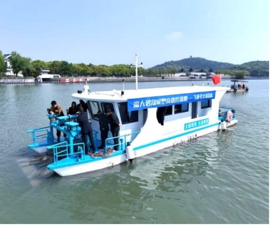 4月24日,由温州大学校长赵敏教授领衔科研团队自主研发的蓝藻水华物理喷射分散技术迭代成果、温大碧晟Ⅲ型高效控藻船“飞廉号”,在太湖鼋头渚举行交付首航暨产品发布会,正式投入太湖流域蓝藻水华常态化应急防控与综合治理工作。仪式由温州大学与无锡市文旅集团联合主办,温州大学校长赵敏及研发核心团队、无锡市生态环境局、水利主管部门、浙江伟达园林工程有限公司等有关单位领导、行业专家共同出席见证。
