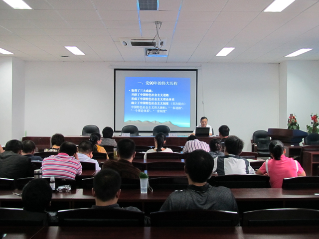 10月12日下午两点,生环学院在10B202会议室召开党总支理论学习中心组(扩大)学习会。学院邀请到校宣传部部长潘玉驹老师主讲《胡锦涛总书记七一讲话精神解读》。学习会由学院党总支书记张丽萍主持。