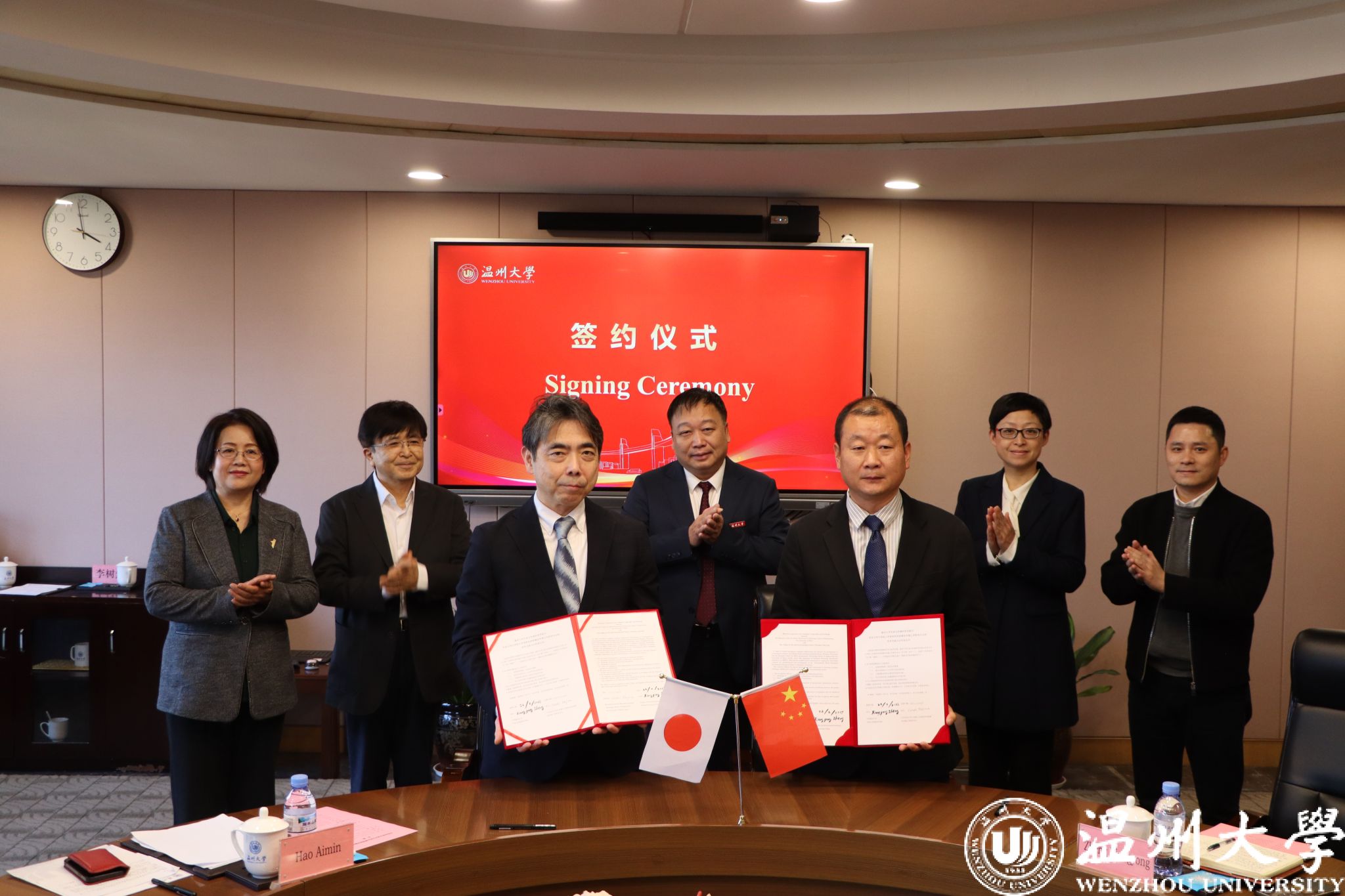 温州大学与日本东京大学于2025年2月28日续签第二期合作协议,标志着两校在学术交流与合作方面迈出新的重要步伐。温州大学校长赵敏,东京大学教授片山浩之,温州大学国际交流与合作处处长陈慧,生环学院负责人及教师代表出席签约仪式。