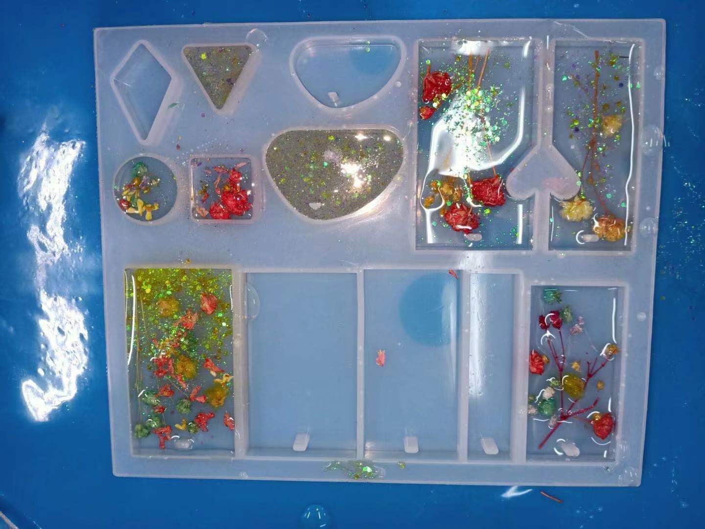 14:00左右,社员们于教室集中,由负责人先对制作步骤进行简单讲解。由于同学们已经有了布艺发夹制作的经验,在负责人完讲解DIY滴胶饰品的制作步骤与要点后,社员们便开始动手制作。看似简单的DIY制作实则并没有想象中的简易。滴胶制作需要精确称量胶水用量,稍许的偏差就有可能使得制作失败,滴胶上干花与闪片的摆放也要讲求舒适和美观。布艺发夹制作更是需要心灵手巧,唯有足够的耐心才能使手下的每一次剪裁与缝制精致美观。在制作完成并集中展示成品与拍摄合照后,本次活动便圆满结束了。