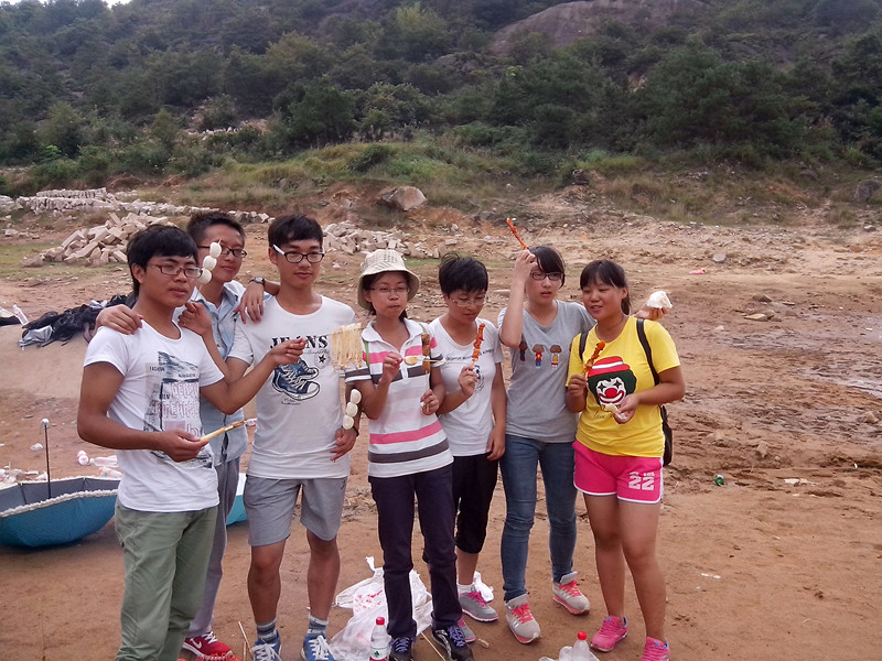 同学们早上八点在南校东大门门口集合,大多数同学们都骑着自行车,没有自行车的女生男生载,大家一起向大罗山行进,到达大罗山山脚同学们将自行车安置好,徒步往山上走去,虽然石阶小路崎岖狭小,但是同学们都兴奋的向上走去,历经两个多小时的努力,同学们终于到达了到罗山上的秀洋水库,团支书组织随机抽签的方式进行分组,每小组自行进行烧烤,食物各种各样,由于爬了很长时间的山,同学们都饿的有些迫不及待的开始动手了。烧烤过后大家有以小组形式玩了多个游戏,同学们都格外的开心,大多数小组的成员也都相互认识了。由于天空下起了小雨,大家决定提前结束活动,在下山过程中,同学们也格外兴奋,丝毫没有感到疲倦。
