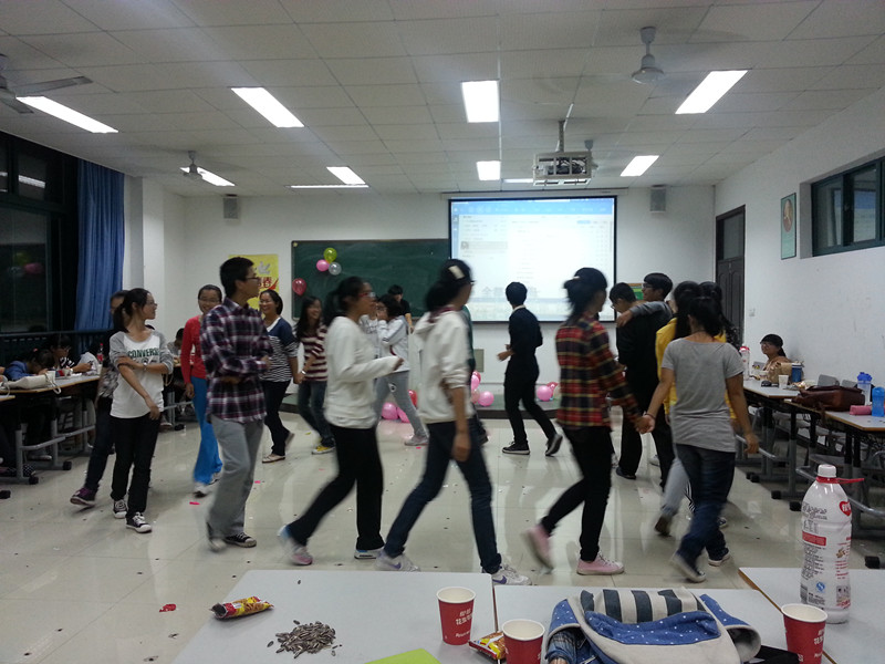 由于时间安排的紧凑性,为了更快与计划活动开始时间相契合,在班长和团支书的带领下,全体班委于晚上6点准时到达活动场地,进行一系列的教室布置。短短半小时内,同学们已陆陆续续地到场,待到6点半,同学们早已整齐坐好等待活动的开始。在主持人精彩的开场白下,活动如火如荼地开始了。为了让同学有更好的交流,第一个活动就是“花开花落”。在这个活动中,同学们彼此相互依靠,不再计较男女之间,彼此团结。这个开场活动为接下来的活跃气氛奠定了基调。紧接着的活动更是让同学们来不及喘气,就上演了一场“我爱你”的深情表白。男男之间,女女之间,甚至男女之间,无不让活动气氛直上巅峰。主持人也要邀请了几位实力唱将,在他们忘乎自我的演唱中,同学们认真倾听,又将气氛慢慢拉到舒适的起点。之后,班级又进行了“007” 、“谁是卧底”、“爱的抱抱” 、“猜猜我是谁”等节目,让整个晚上都充满了13生科班同学们的欢声笑语。