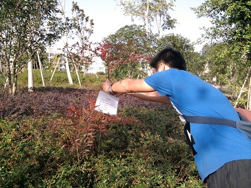 11月11日下午两点,难得的晴好天气。会员们准时在生环楼下集合,按照事先的安排进行了分组。然后在组长的带领下,拿上树牌,开始进行“我与绿色的一个约会”。在挂树牌的过程中遇到了许多的问题。但都在会员们的努力下一一解决了:遇到枝叶分叉较少的王棕,组员们一起想办法。遇到大家不认识的植物,组员们坐在一起讨论。活动过程中也夹杂着很多乐趣,也因为平时对植物的不够了解,闹出了很多的笑话。