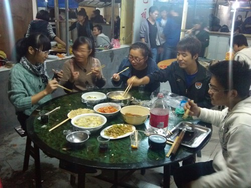在2012年11月17日上午,同学们首先是去准备食物材料,根据自己队伍的意愿,买什么,做什么。到了下午3点时分,便一起前往事先所订好的地点。刚开始时,大家手忙脚乱,不知道该先做什么,对于所做的第一道菜,队中也是众说纷纭,犹豫不决。但是到了后面,大家就进入了这个农家乐的状态了,无论你会是不会,无论你想或不想,在这个时候已不是主要的问题了。全身心的投入,不知疲倦的穿梭在人群中,欢笑声,争论声,此起彼伏,更加夹杂着汗水的味道。最后是成果的分享阶段了,对于自己组所做出来的成果大家都是相当满意的,不过因为大多数同学是来自不同的省份,有些自然是独具风味和别具一格的。在成果分享的同时,我们也不忘一起谈论此时我国最热的事件—中共十八大的完美闭幕。对于国家大事,有些同学还是非常的有见地的,但每个人的思维方式不一样,自然也会有所相差,这时便有了面红耳赤的争论声,但结尾往往是以美满而收场的。大家无论是在身体还是思想上,都是满载而归。