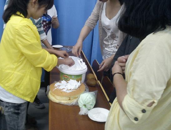 2012年5月19日星期六下午,我班在11A-201开展了本月的团日活动—制作蛋糕。