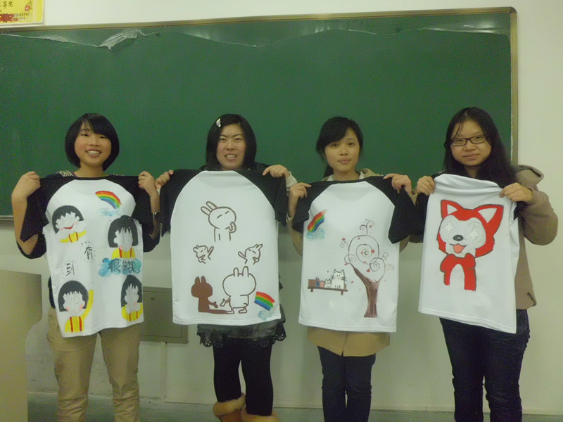 下午两点同学们都拿着自己的绘画工具陆陆续续地走进教室,选择适合自己的衣服,衣服正面“珍惜”二字,说明着要珍惜10环本这些年在一起的时光。衣服背面那就是同学们的天下了,画自己想画的图画,塑造自己的个性,展现自己最想展现的一面。拿着手中的画笔,在洁白的衣服上挥洒自己的笔。衣服上有印着自己的手印,可爱的兔斯基,樱桃小丸子,嘻哈猴······大家都专注于图样的勾画。接下来就是上色,根据图样和本身的颜色,大家纷纷出动,用五彩的颜色使原本暗淡的图画变得亮丽生动,再做上特有的标记。时间就这样在绘画中流逝了,一件件令人满意的衣服展现在大家面前,拍下刚出成果时的喜悦,拍下那精彩的一刻。各式各样的衣服展现在面前时,真有止不住的兴奋,那是大家精心制作的成果,那里展现了大学生的内心世界,承载着梦想。