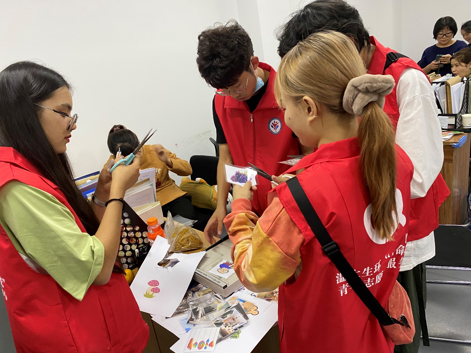 10月28日12:40至17:30温州大学生命与环境科学学院“生命曙光”青年志愿者服务中心的大一新成员和志愿者们来到温州星之家自闭症康复中心帮助老师制作教具。