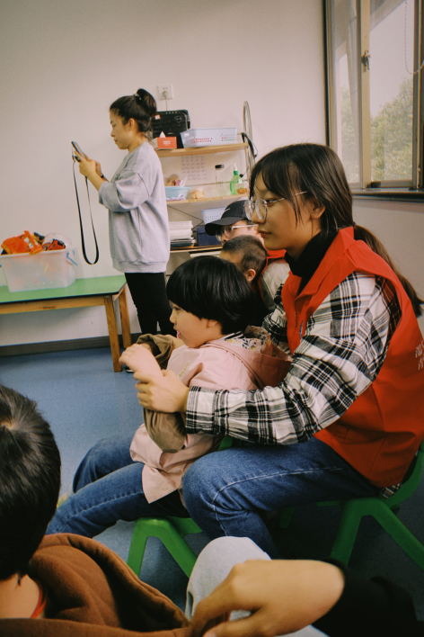 12:50左右,15名志愿者搭乘公交车前往雪山路星之家培训中心。经过一个小时漫长的车程,志愿者们到达了目的地。穿上红马甲带上鞋套后,志愿者们分组在不同的班级协助星之家老师上课。活动中,志愿者们热情而又亲切的对待自己所对应的儿童。最初,星之家的孩子因为离开熟悉的家人,开始大哭大闹,不愿意配合志愿者,甚至在我们张开手想要拥抱时他们转身就跑。好在滴水也会穿石,冰块也会被捂热,在我们的不懈努力下,一些本哭泣不已的小朋友不再流泪,开始配合老师上课,一些不太排斥他人的孩子甚至开始与志愿者交流,朝我们露出孩提童真的笑容。在每节课的交换学生过程中,不同组的志愿者配合得当,小心又快速的带着孩子去到下节课上课的班级。活动进行到16:20结束,志愿者们在星之家培训中心拍照留恋,与老师道别后又踏上归途。