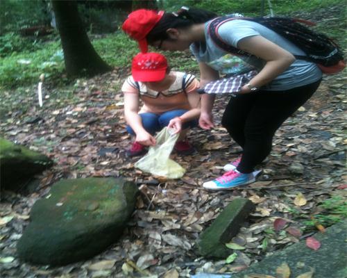 25日12:30,志愿者们准时在城院门口集合,带队者清点人数后,一行人一起乘公交前往植物园,在下车步行一段路后,志愿者们终于在14:00到达了植物园,带队者分发了小红帽、垃圾袋并交代好了后,志愿者们头戴小红帽,手里拿了垃圾袋兵分两路,走进了植物园的林荫小道上。志愿者们很认真的捡着垃圾,没有放过角角落落小的垃圾,即使刚下过雨,潮潮的空气让人顿生倦意,且地上都湿湿的,但志愿者们毫不介意即湿又脏的垃圾,都毫不犹豫的送进了垃圾袋,其实最坏的条件是有很多蚊子,他们也毫不抱怨。伴着清脆的鸟叫,志愿者们干的热火朝天。垃圾捡完后,志愿者们一起伫足欣赏了植物园的植物,并根据树牌很认真的看了很多植物的资料,增长了自己的见识。看着干干净净的小道,大家都会心一笑,满足的离开了植物园。