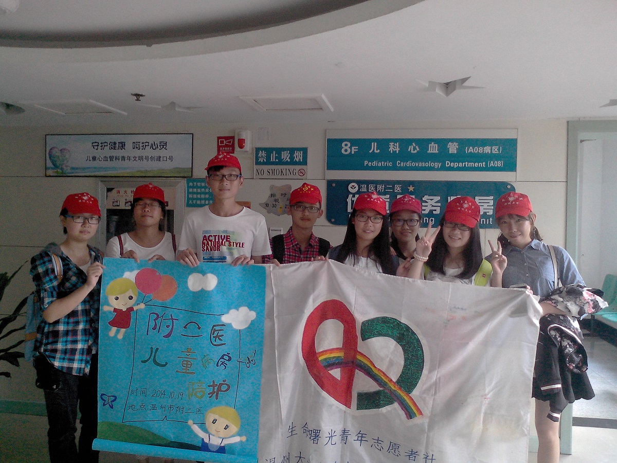 2014年10月19日12:40至16:40,温州大学生命与环境科学学院“生命曙光”青年志愿者社的志愿者们又出动啦,他们在附二医开展了儿童病房陪护志愿者活动。