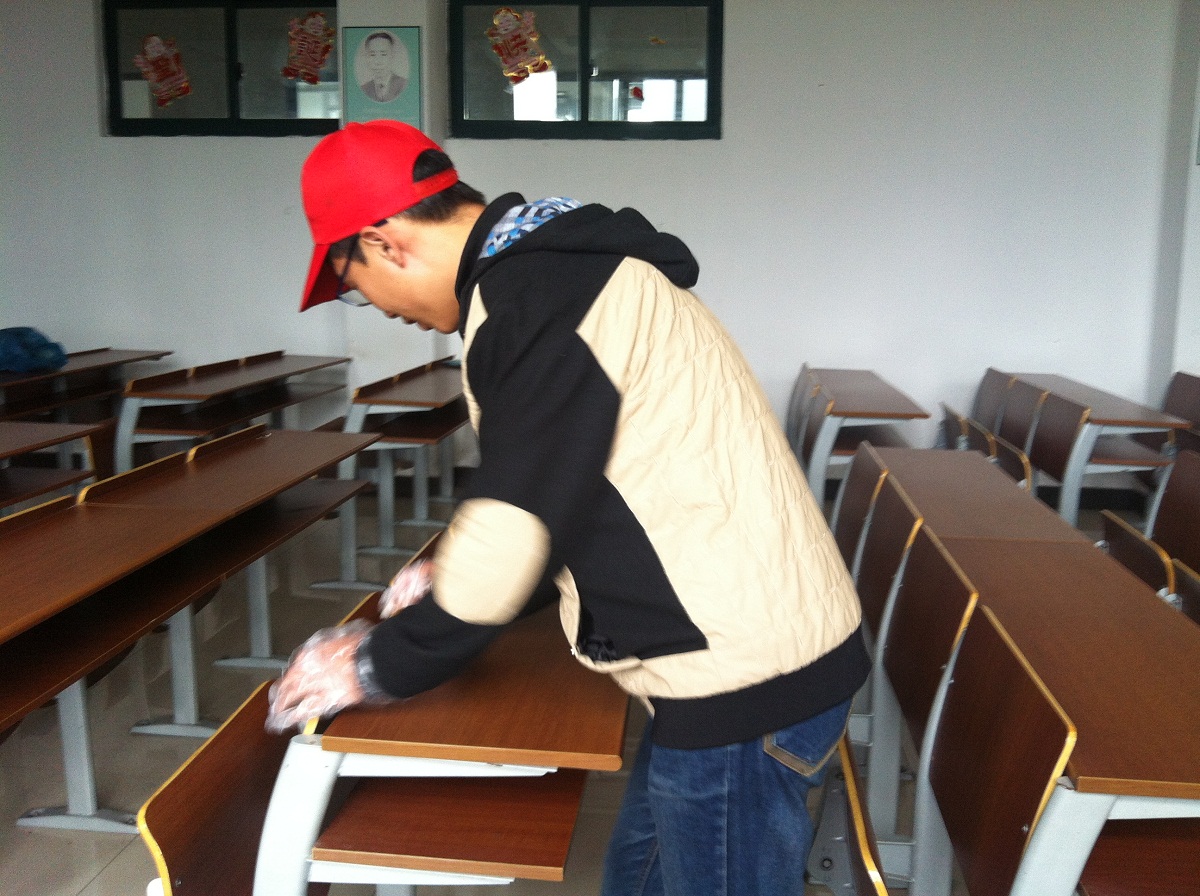 2014年11月12日,为了弘扬校园文化,创造更加美好的教室,温州大学生命与环境科学学院“生命曙光”青年志愿者社在校文督队的倡导下开展了“拒绝课桌文化”志愿者活动,顾名思义,就是对教室里的桌椅上的文字进行清理。