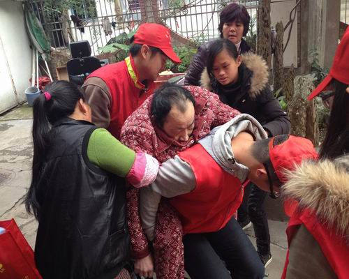 14:00左右,所有志愿者到达洪殿社区,戴上温大青年志愿者的小红帽,穿上志愿者衣服,在社区工作人员的带领下前往残疾人家里帮忙打扫。到达地点后,首先对所有志愿者进行打扫工作分配。在打扫卫生的期间,志愿者还与贫困的老人进行了沟通。这位老人的老伴瘫痪在床,老人自己胃出血身体不好,家中没有多少经济来源,承担不了老伴在养老院的费用,老人向我们求助,希望我们帮忙把老伴背回家中。我们的志愿者们随着老人前往养老院,两位男生一个背着老爷爷、另一个在旁边扶着不让老爷爷摔跤。其他志愿者们分别帮忙搬东西。最后,大家帮助老人把老伴接回家中并安顿好后结束了此次学雷锋的爱心之行。
