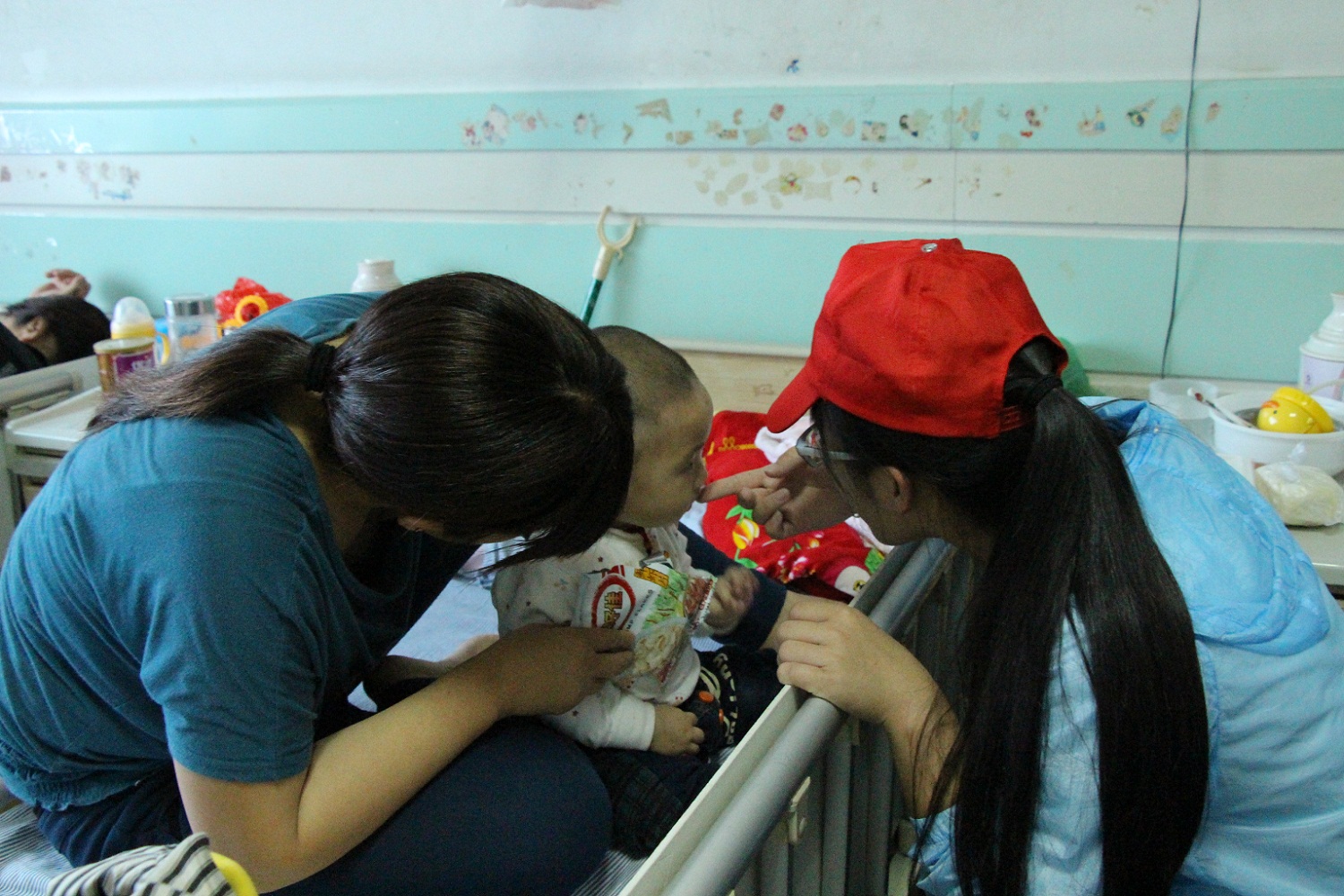 到达附二医后,我们找到医院的护士,为我们找到需要陪护的小朋友,大家都陆续找到自己要带的小朋友,开始了这个特别的下午,有的志愿者教小朋友读书写字,有的志愿者陪小朋友玩着玩具,有的志愿者和小朋友追逐着玩耍。虽然有的小朋友害羞内向比较难开始熟悉,但我们也很努力的陪她讲话,和她玩耍。家长们也偶尔和我们交流着,十分乐意我们的到来,为小朋友有些无聊的下午带来了一些生气。下午这短短的时间很快过去了,大家一个个向小朋友和家长们说再见后就离开医院了。在路上,带着对小朋友的不舍和下午的回忆睡去了。