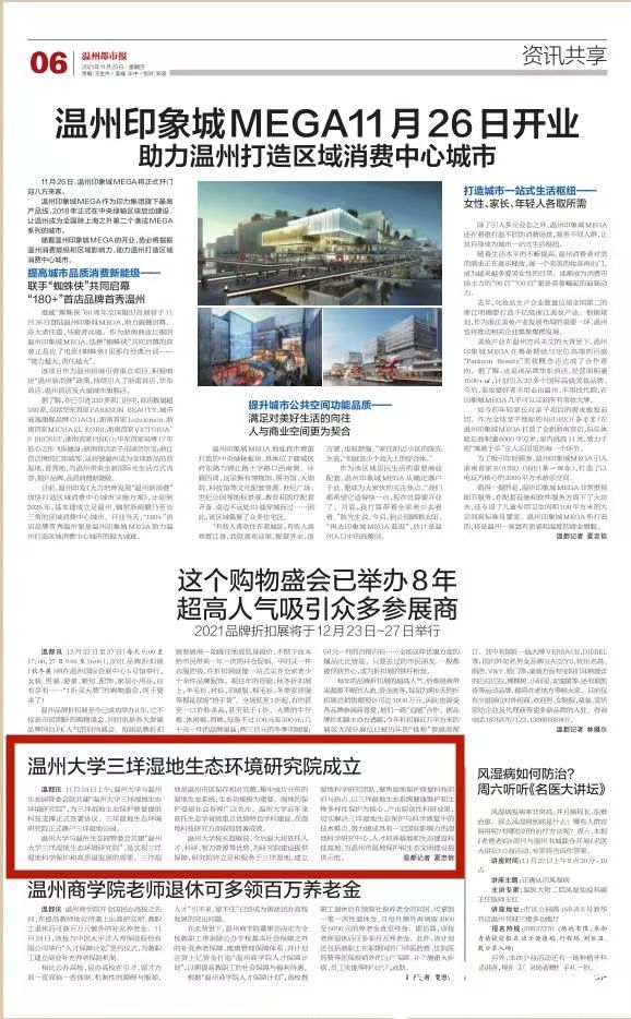11月24日上午,温州大学与温州生态园管委会就共建“温州大学三垟湿地生态环境研究院”,为三垟湿地生态保护修复提供科技支撑正式签署协议。三垟湿地生态环境研究院正式落户三垟湿地公园。双方代表签约温州大学与温州生态园管委会共建“温州大学三垟湿地生态环境研究院”,是实现三垟湿地科学保护和高质量发展的需要。三垟湿地是温州市区保存相对完整、集中成片分布的湿地生态系统,生态功能极为重要,湿地的保护受到社会各界广泛关注。...