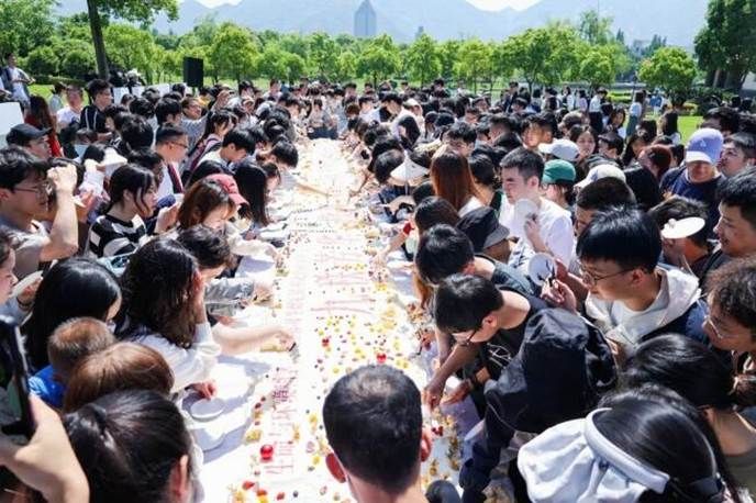 9米巨型蛋糕 温州大学供图时值温州大学90周年华诞到来之际,5月9日上午9点33分,温州大学生命与环境科学学院在学校“Hello WZU”草坪上开展了一堂生动开放的专业实践教育课。现场,温州大学校领导同90位师生代表共同制作9米巨型蛋糕,深情献礼温州大学90周年华诞。学生参与蛋糕制作 温州大学供图师生品尝蛋糕 温州大学供图据悉,巨型蛋糕由生环学院的师生全程参与前期烘焙,过程中充分运用了蛋清蛋白质发泡,烘焙美拉德反应,蛋白质变性,...