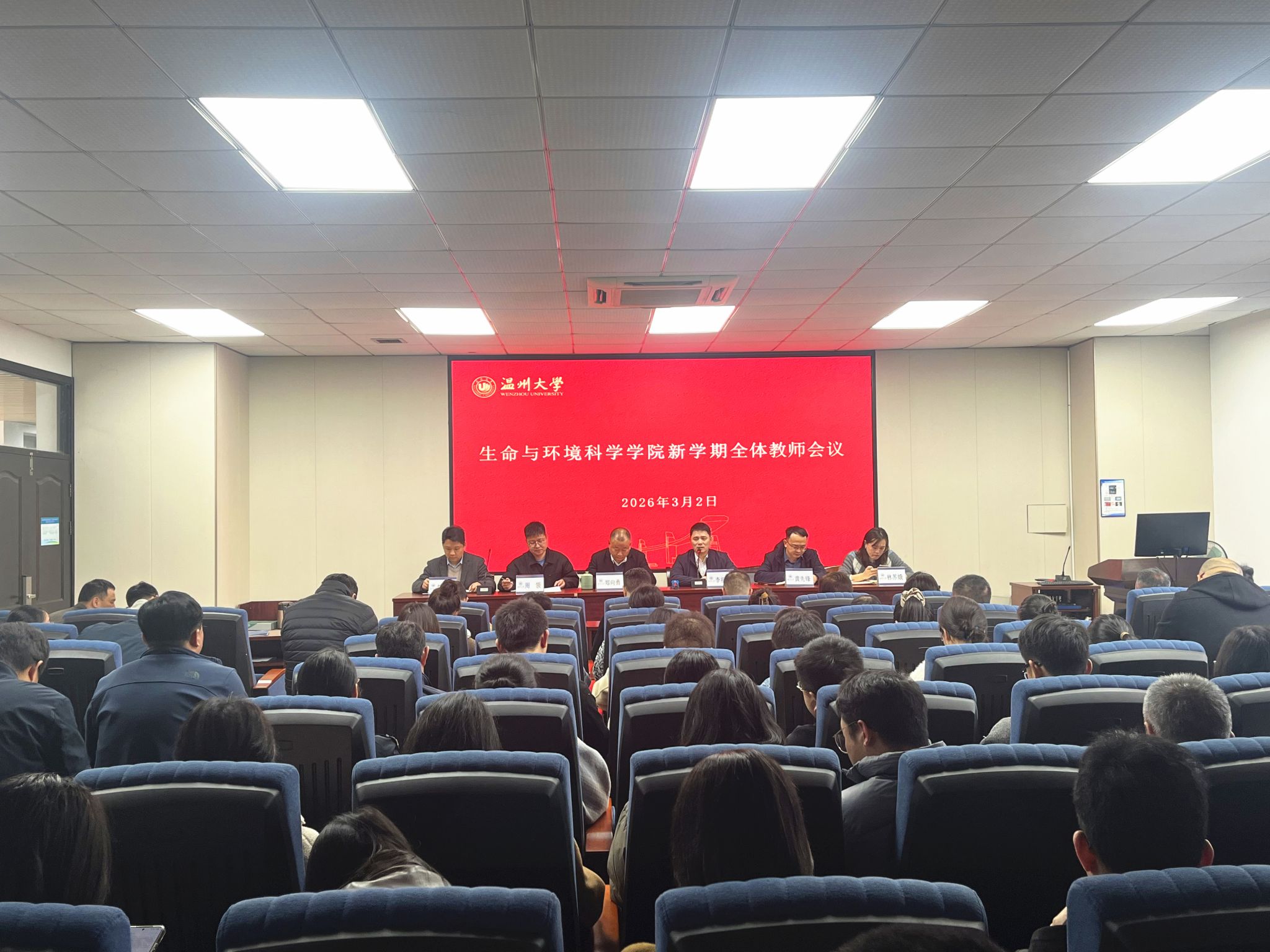 为全面总结本学期工作,凝聚全体教师力量,2026年1月16日下午,我院在10B202会议室召开学期末教职工大会,学院全体教职工参加。会上,院长郑向勇介绍学院近期师资人员变动情况,随后围绕党建引领、学科科研、师资队伍、教学成果、学生培养、服务地方、文化建设等维度全面通报学院2025年度建设发展情况,阐述了2025年度学院取得的标志性成果以及下一步工作思路与具体举措。郑向勇重点介绍了生态学优势特色学科建设情况,鼓励全体教职工齐心协力,...